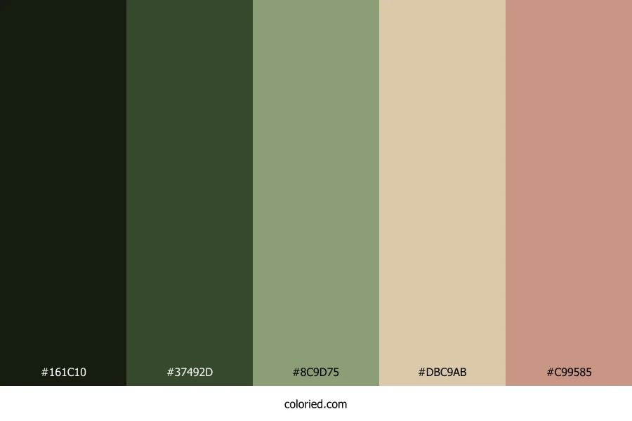 ![]() | #161C10 | 22, 28, 16 | 90, 27%, 9% | 21%, 0%, 43%, 89% | oklch(0.216 0.024 130) |