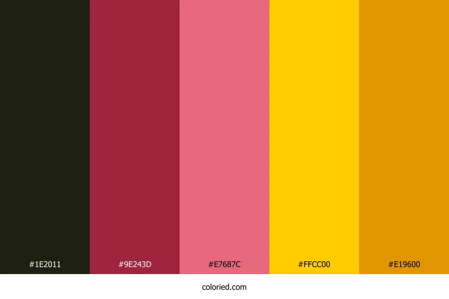 | #9E243D | 158, 36, 61 | 348, 63%, 38% | 0%, 77%, 61%, 38% | oklch(0.466 0.157 15) | |