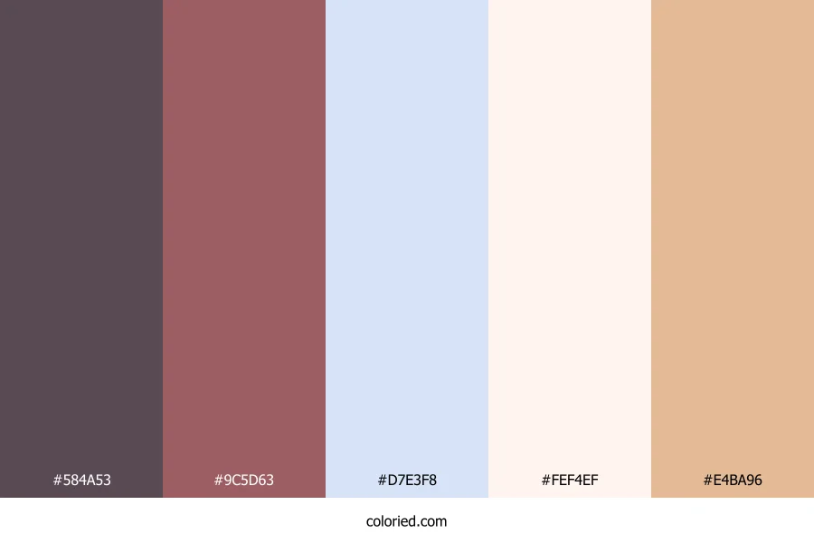 | #9C5D63 | 156, 93, 99 | 354, 25%, 49% | 0%, 40%, 37%, 39% | oklch(0.551 0.083 14) | |
