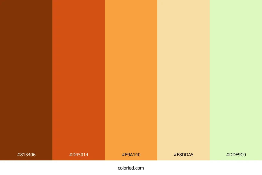 ![]() | #813406 | 129, 52, 6 | 22, 91%, 26% | 0%, 60%, 95%, 49% | oklch(0.426 0.118 45) |