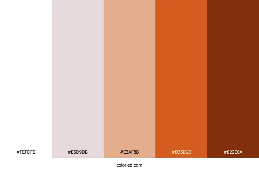 | #D35D20 | 211, 93, 32 | 20, 74%, 48% | 0%, 56%, 85%, 17% | oklch(0.618 0.164 44) | |