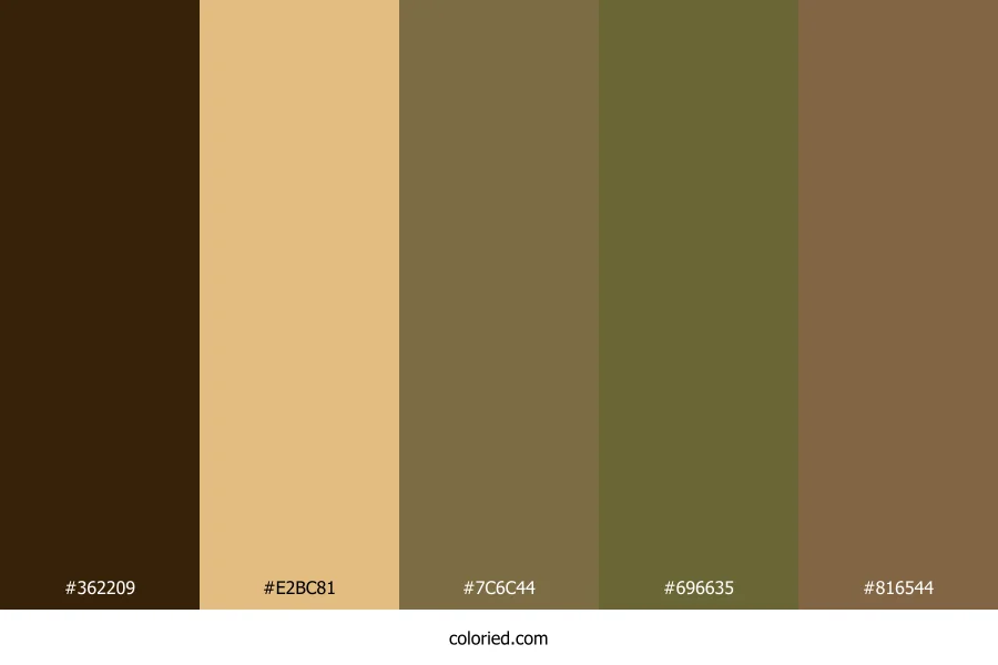 ![]() | #362209 | 54, 34, 9 | 33, 71%, 12% | 0%, 37%, 83%, 79% | oklch(0.272 0.048 69) |