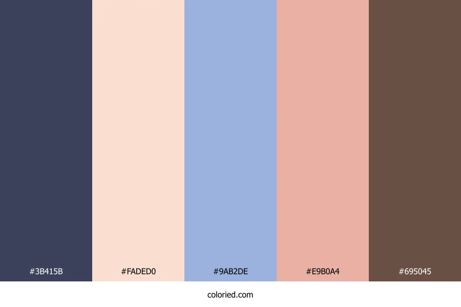 ![]() | #3B415B | 59, 65, 91 | 229, 21%, 29% | 35%, 29%, 0%, 64% | oklch(0.381 0.045 274) |
