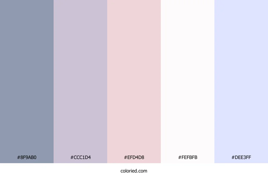 ![]() | #8F9AB0 | 143, 154, 176 | 220, 17%, 63% | 19%, 13%, 0%, 31% | oklch(0.685 0.035 264) |
