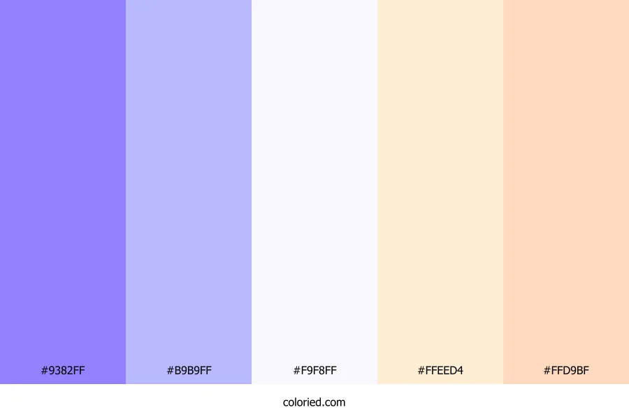 ![]() | #9382FF | 147, 130, 255 | 248, 100%, 75% | 42%, 49%, 0%, 0% | oklch(0.679 0.179 287) |