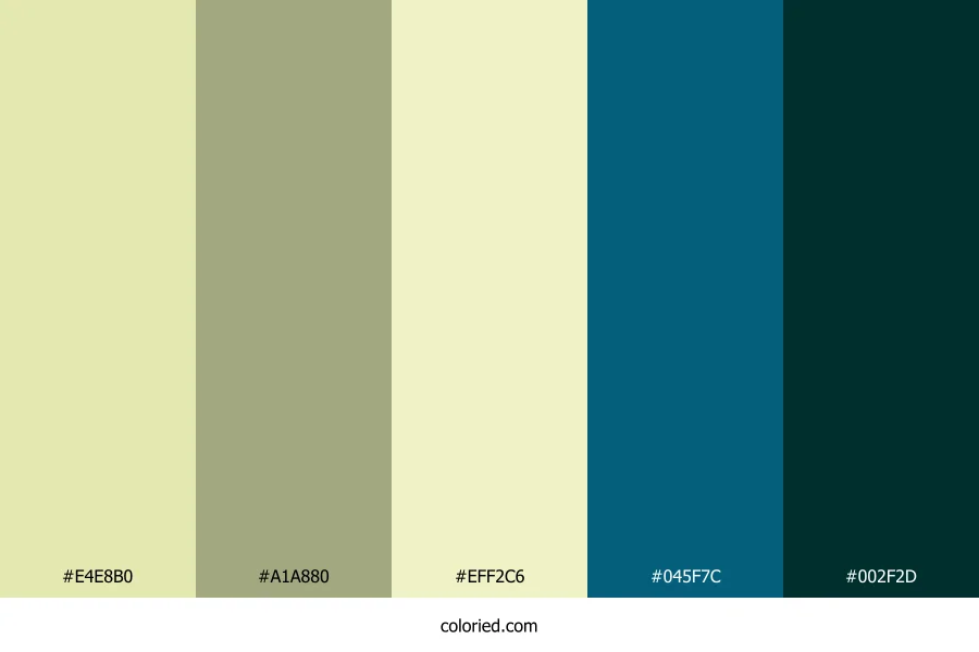 | #EFF2C6 | 239, 242, 198 | 64, 63%, 86% | 1%, 0%, 18%, 5% | oklch(0.948 0.057 111) | |