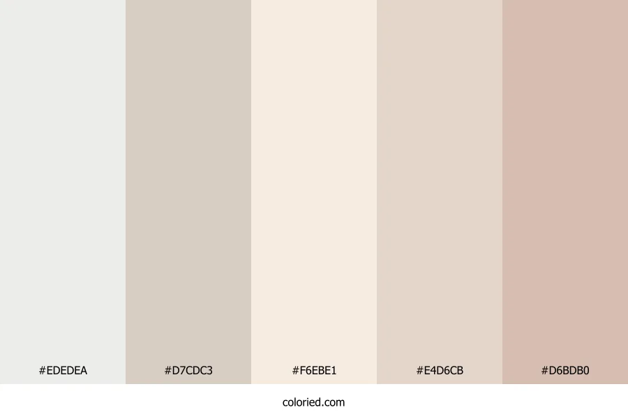 | #D6BDB0 | 214, 189, 176 | 21, 32%, 76% | 0%, 12%, 18%, 16% | oklch(0.816 0.034 49) |