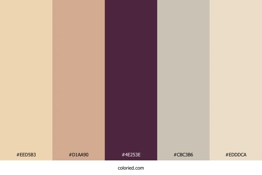 | #EDDDCA | 237, 221, 202 | 33, 49%, 86% | 0%, 7%, 15%, 7% | oklch(0.905 0.031 72) |