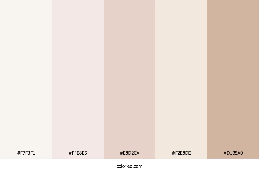 | #F2E8DE | 242, 232, 222 | 30, 43%, 91% | 0%, 4%, 8%, 5% | oklch(0.936 0.017 68) | |