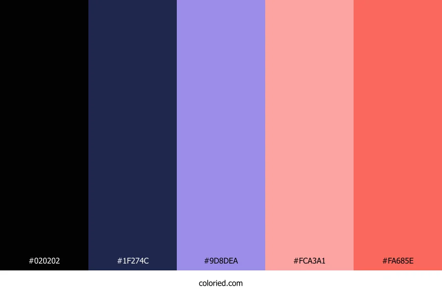| #9D8DEA | 157, 141, 234 | 250, 69%, 74% | 33%, 40%, 0%, 8% | oklch(0.696 0.134 290) | |