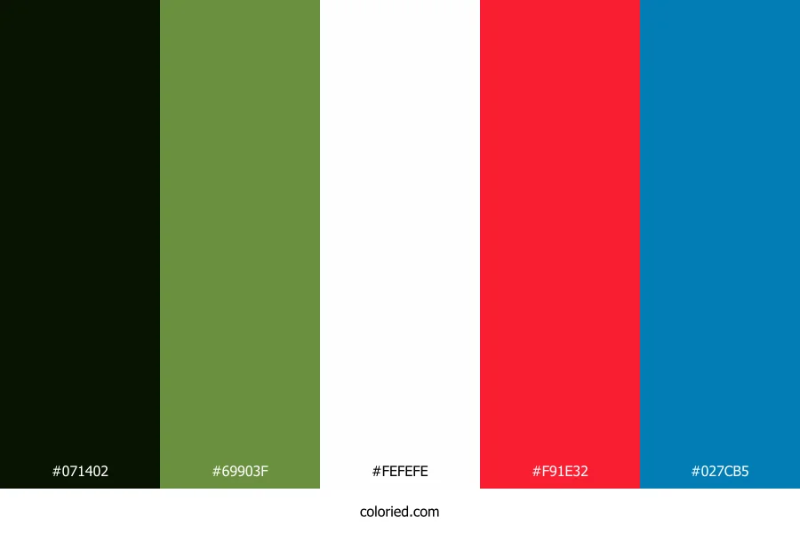 ![]() | #071402 | 7, 20, 2 | 103, 82%, 4% | 65%, 0%, 90%, 92% | oklch(0.173 0.043 136) |
