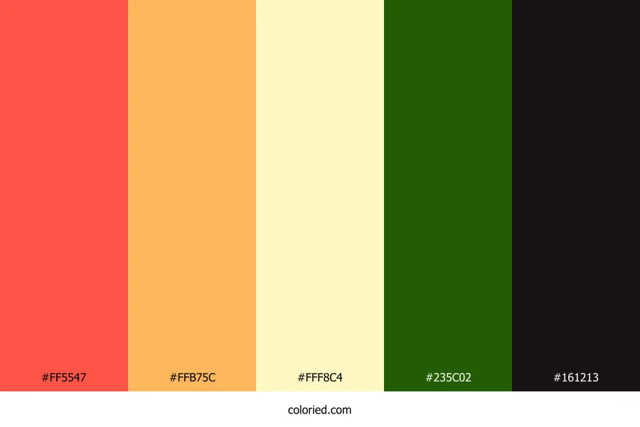 ![]() | #FF5547 | 255, 85, 71 | 5, 100%, 64% | 0%, 67%, 72%, 0% | oklch(0.680 0.208 28) |