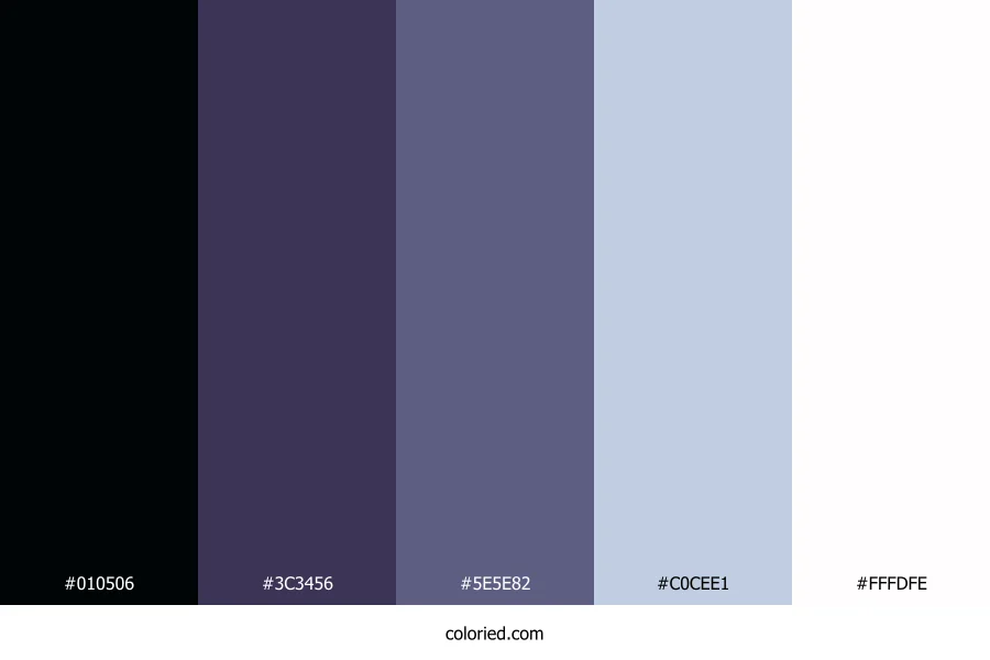 | #5E5E82 | 94, 94, 130 | 240, 16%, 44% | 28%, 28%, 0%, 49% | oklch(0.496 0.057 284) | |