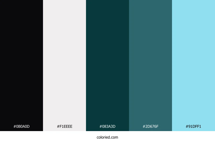| #91DFF1 | 145, 223, 241 | 191, 77%, 76% | 40%, 7%, 0%, 5% | oklch(0.859 0.081 214) |