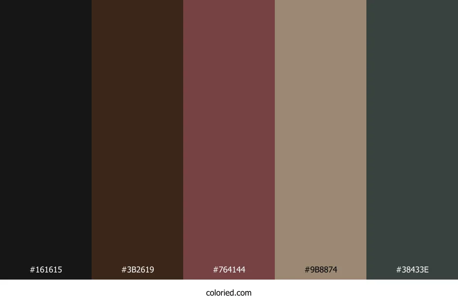 | #38433E | 56, 67, 62 | 153, 9%, 24% | 16%, 0%, 7%, 74% | oklch(0.371 0.017 166) |