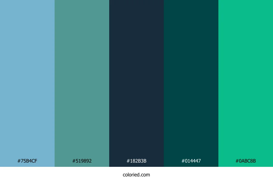 | #014447 | 1, 68, 71 | 183, 97%, 14% | 99%, 4%, 0%, 72% | oklch(0.352 0.059 200) | |