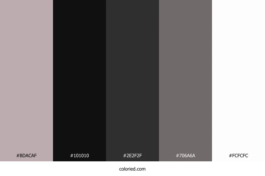 ![]() | #BDACAF | 189, 172, 175 | 349, 11%, 71% | 0%, 9%, 7%, 26% | oklch(0.760 0.020 5) |