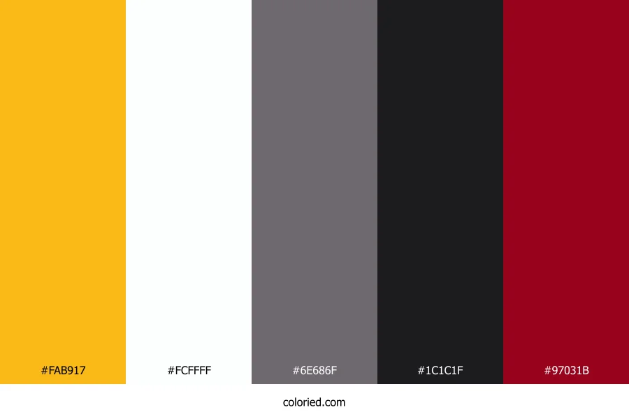 ![]() | #FAB917 | 250, 185, 23 | 43, 96%, 54% | 0%, 26%, 91%, 2% | oklch(0.824 0.166 82) |