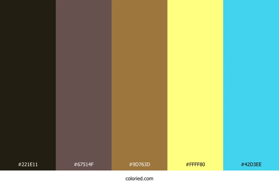 ![]() | #221E11 | 34, 30, 17 | 46, 33%, 10% | 0%, 12%, 50%, 87% | oklch(0.235 0.024 93) |