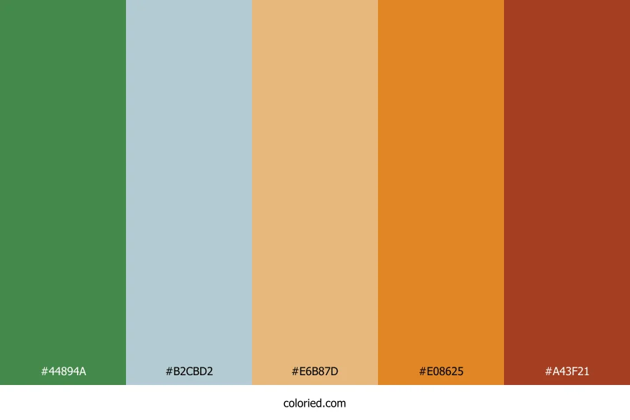 ![]() | #44894A | 68, 137, 74 | 125, 34%, 40% | 50%, 0%, 46%, 46% | oklch(0.569 0.118 146) |