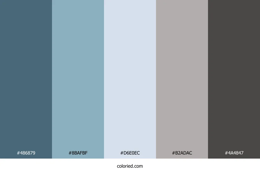 | #8BAFBF | 139, 175, 191 | 198, 29%, 65% | 27%, 8%, 0%, 25% | oklch(0.733 0.045 227) | |