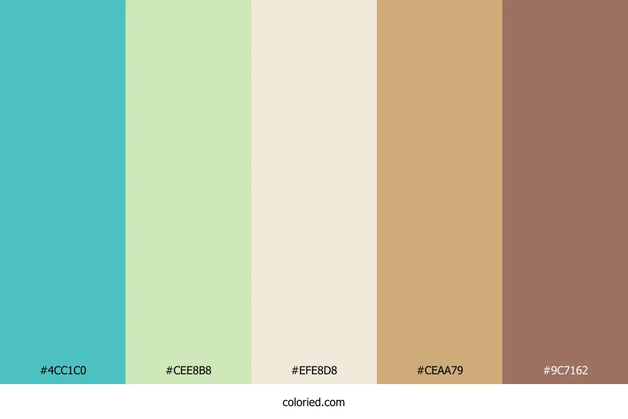 ![]() | #4CC1C0 | 76, 193, 192 | 179, 49%, 53% | 61%, 0%, 1%, 24% | oklch(0.745 0.104 194) |