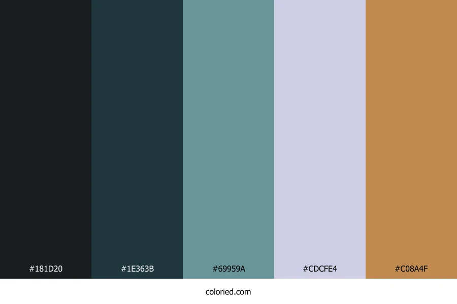 | #1E363B | 30, 54, 59 | 190, 33%, 17% | 49%, 8%, 0%, 77% | oklch(0.315 0.031 212) | |