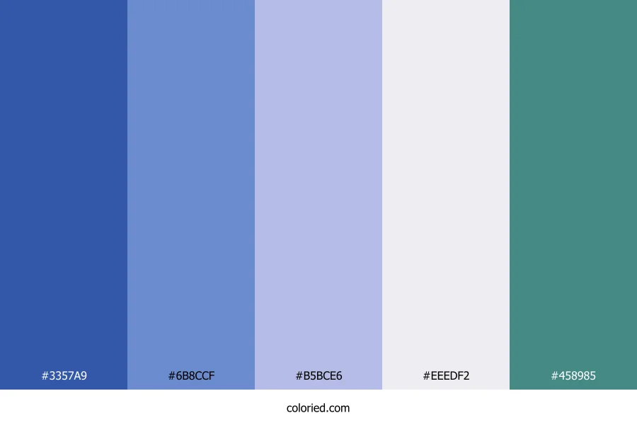 ![]() | #3357A9 | 51, 87, 169 | 222, 54%, 43% | 70%, 49%, 0%, 34% | oklch(0.475 0.138 264) |