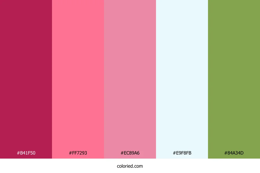 ![]() | #B41F50 | 180, 31, 80 | 340, 71%, 41% | 0%, 83%, 56%, 29% | oklch(0.507 0.184 8) |
