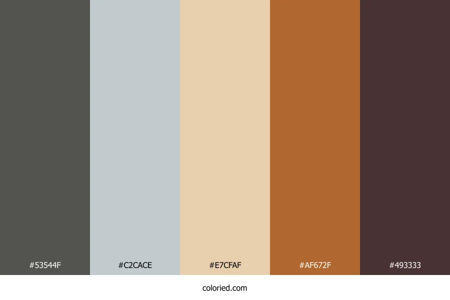 ![]() | #53544F | 83, 84, 79 | 72, 3%, 32% | 1%, 0%, 6%, 67% | oklch(0.443 0.008 116) |