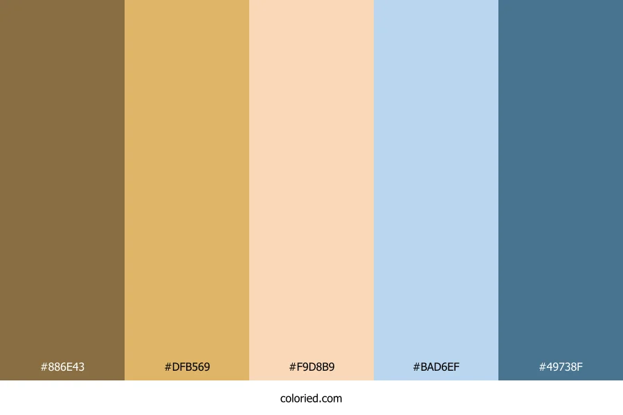 | #DFB569 | 223, 181, 105 | 39, 65%, 64% | 0%, 19%, 53%, 13% | oklch(0.795 0.106 81) | |