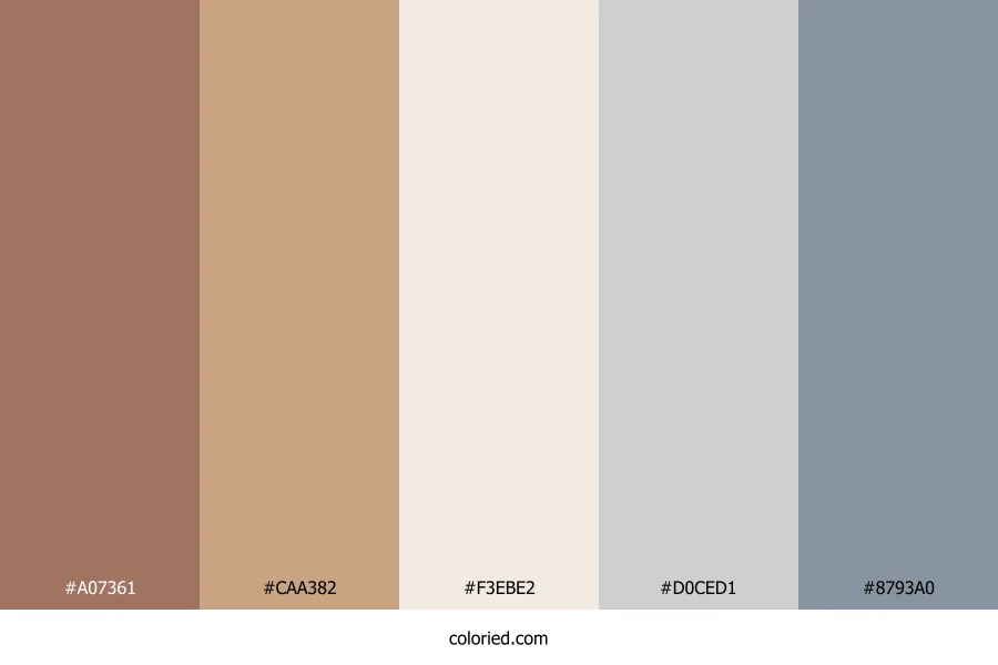 ![]() | #A07361 | 160, 115, 97 | 17, 25%, 50% | 0%, 28%, 39%, 37% | oklch(0.596 0.063 43) |