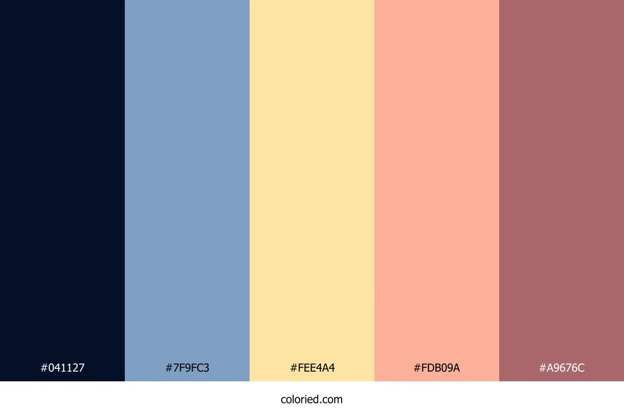 ![]() | #041127 | 4, 17, 39 | 218, 81%, 8% | 90%, 56%, 0%, 85% | oklch(0.180 0.050 259) |