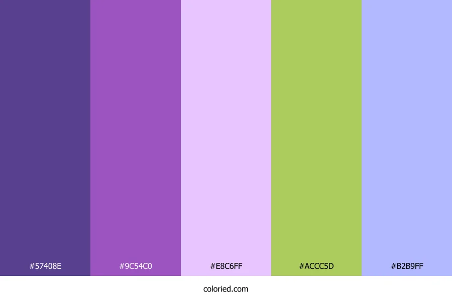 ![]() | #57408E | 87, 64, 142 | 258, 38%, 40% | 39%, 55%, 0%, 44% | oklch(0.436 0.124 294) |