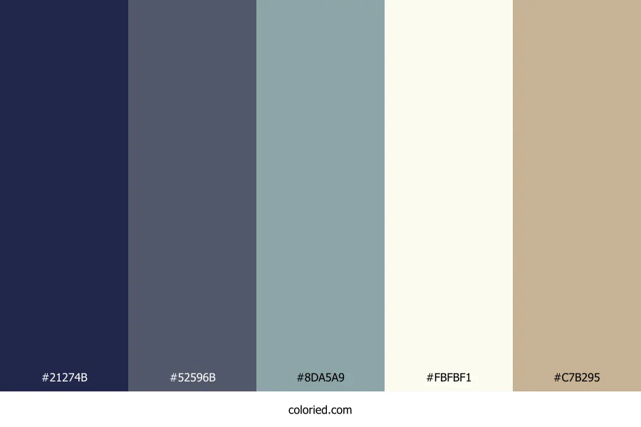 ![]() | #21274B | 33, 39, 75 | 231, 39%, 21% | 56%, 48%, 0%, 71% | oklch(0.287 0.066 274) |
