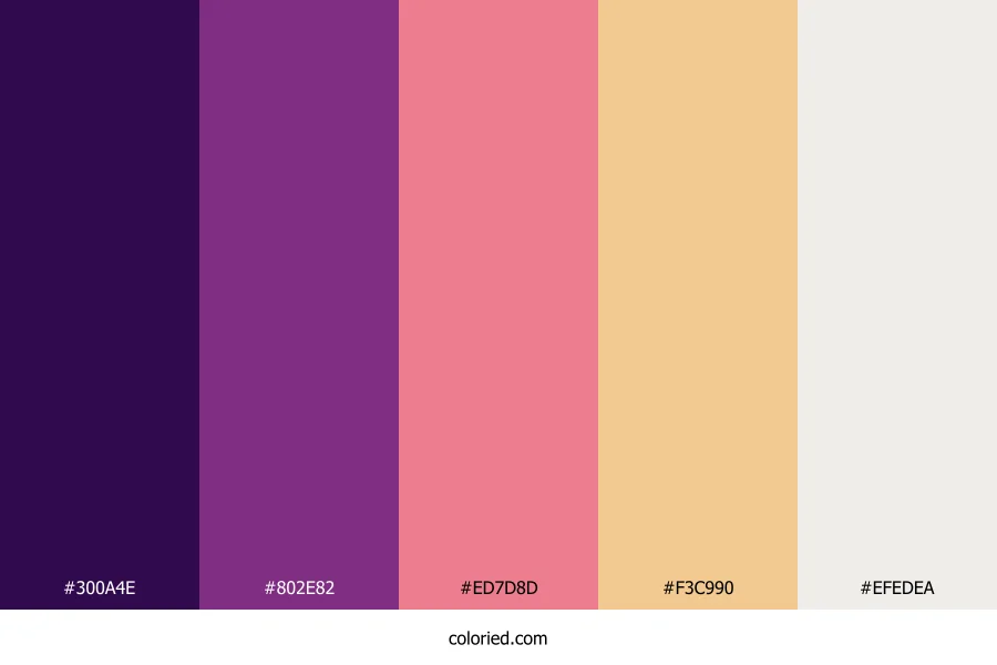 ![]() | #300A4E | 48, 10, 78 | 274, 77%, 17% | 38%, 87%, 0%, 69% | oklch(0.255 0.115 304) |