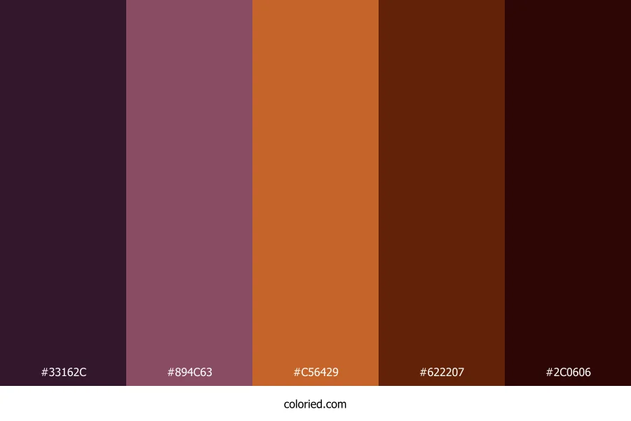 ![]() | #33162C | 51, 22, 44 | 314, 40%, 14% | 0%, 57%, 14%, 80% | oklch(0.252 0.058 337) |