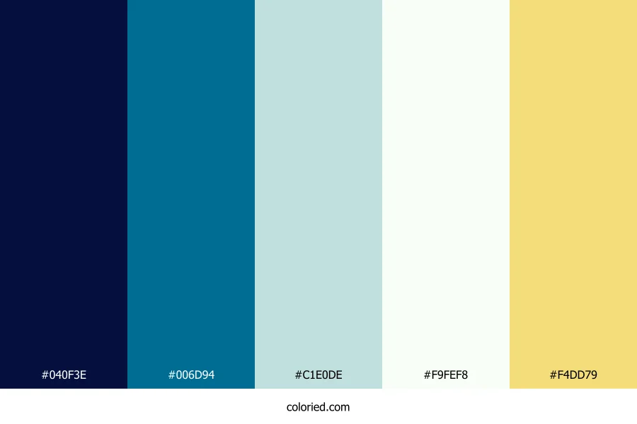 ![]() | #040F3E | 4, 15, 62 | 229, 88%, 13% | 94%, 76%, 0%, 76% | oklch(0.199 0.091 266) |
