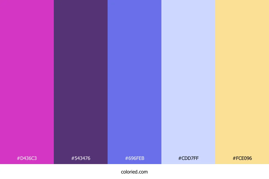 ![]() | #D436C3 | 212, 54, 195 | 306, 65%, 52% | 0%, 75%, 8%, 17% | oklch(0.622 0.240 333) |