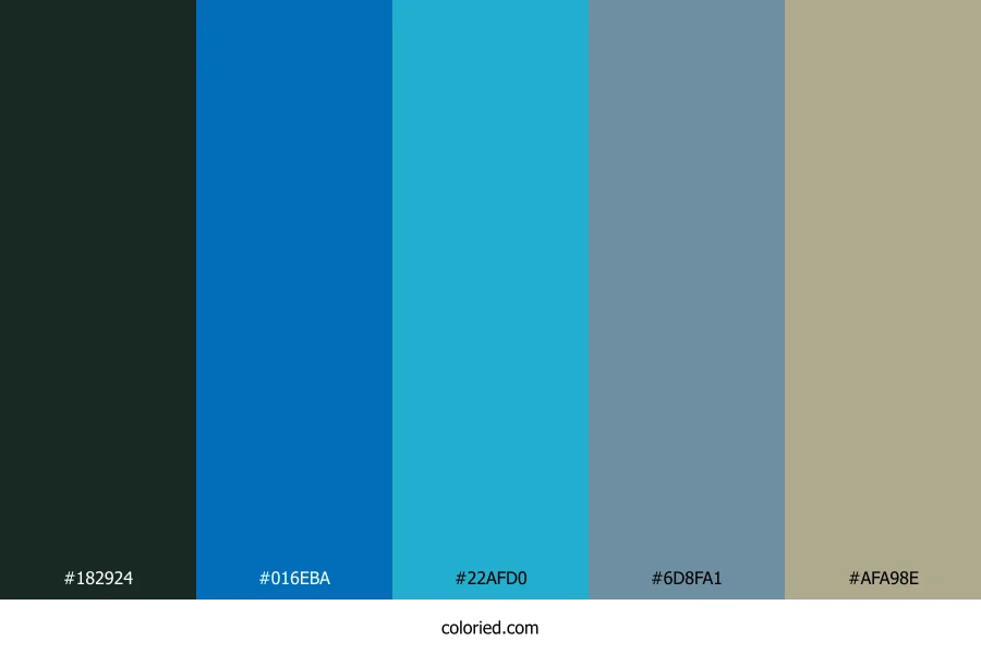 | #6D8FA1 | 109, 143, 161 | 201, 22%, 53% | 32%, 11%, 0%, 37% | oklch(0.631 0.047 232) | |