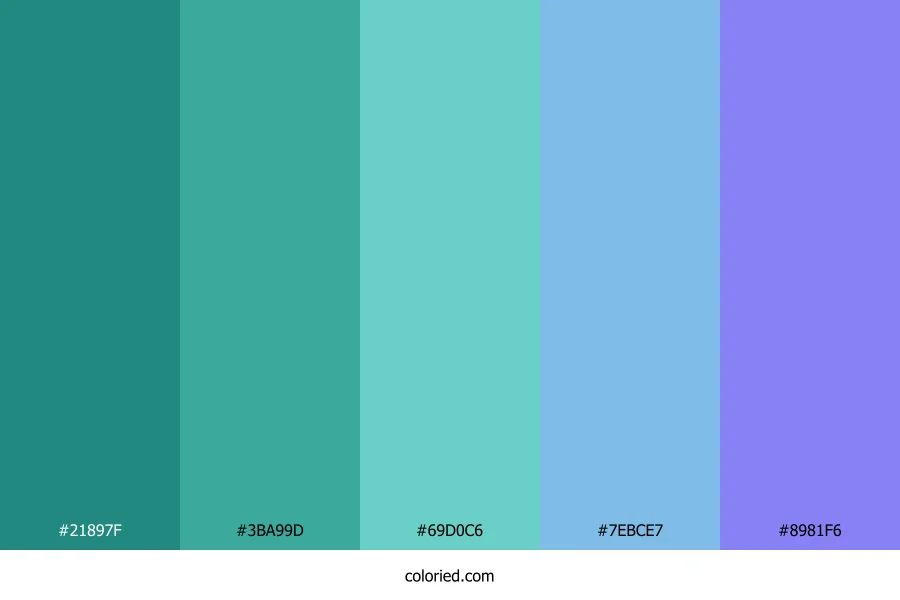 ![]() | #21897F | 33, 137, 127 | 174, 61%, 33% | 76%, 0%, 7%, 46% | oklch(0.571 0.092 185) |