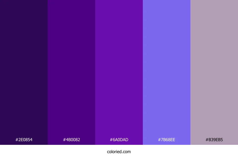 | #7B68EE | 123, 104, 238 | 249, 80%, 67% | 48%, 56%, 0%, 7% | oklch(0.604 0.194 285) | |