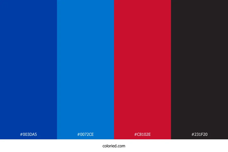 ![]() | #003DA5 | 0, 61, 165 | 218, 100%, 32% | 100%, 63%, 0%, 35% | oklch(0.402 0.177 261) |