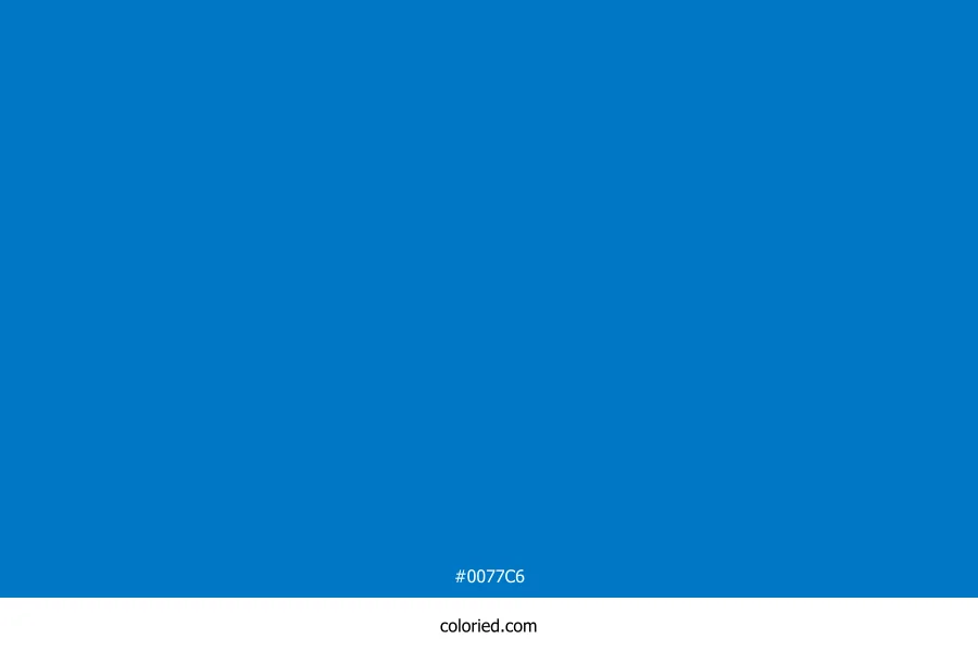 ![]() | #0077C6 | 0, 119, 198 | 204, 100%, 39% | 100%, 40%, 0%, 22% | oklch(0.556 0.150 248) |