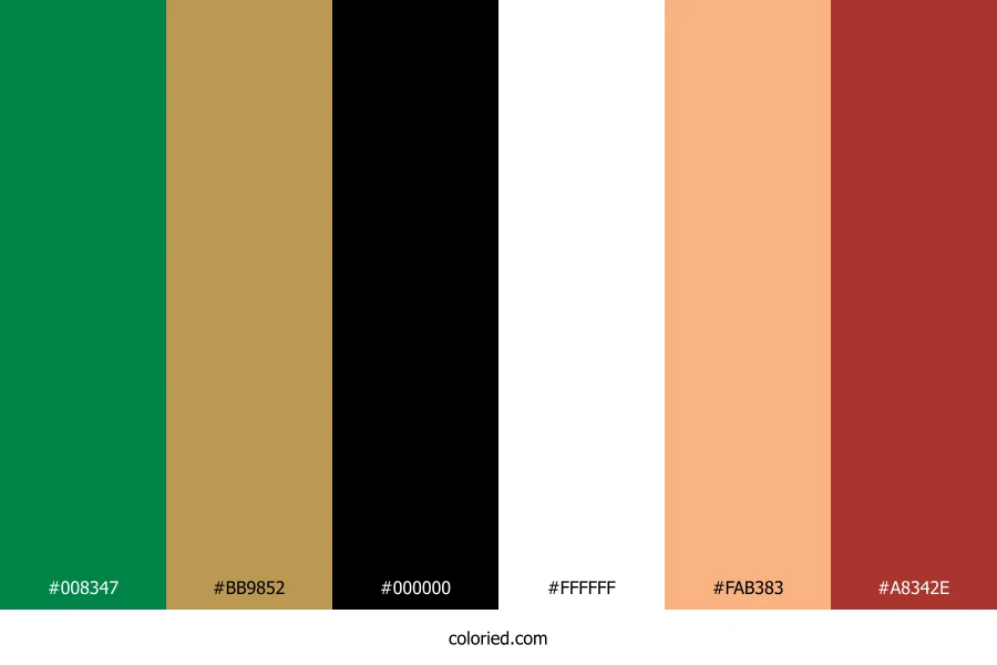 ![]() | #008347 | 0, 131, 71 | 153, 100%, 26% | 100%, 0%, 46%, 49% | oklch(0.535 0.135 154) |