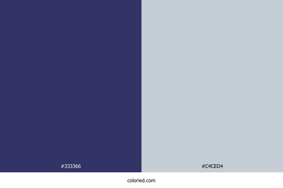 ![]() | #333366 | 51, 51, 102 | 240, 33%, 30% | 50%, 50%, 0%, 60% | oklch(0.349 0.087 281) |