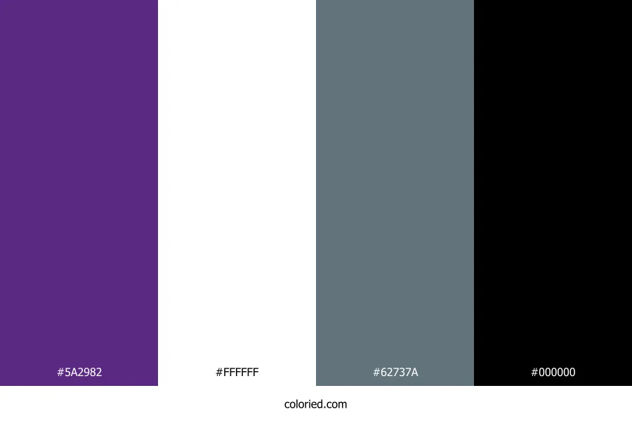 ![]() | #5A2982 | 90, 41, 130 | 273, 52%, 34% | 31%, 68%, 0%, 49% | oklch(0.395 0.145 306) |