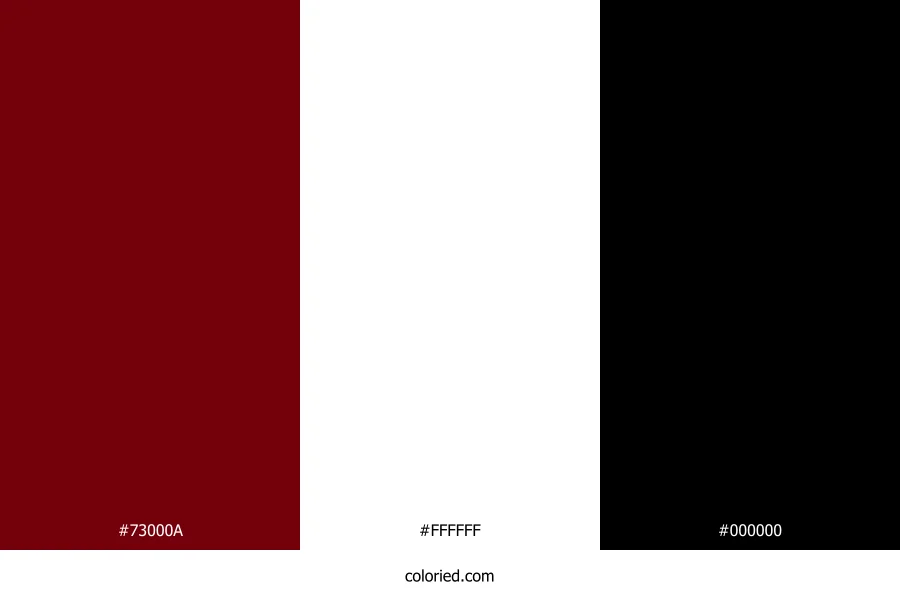 ![]() | #73000A | 115, 0, 10 | 355, 100%, 23% | 0%, 100%, 91%, 55% | oklch(0.350 0.142 26) |