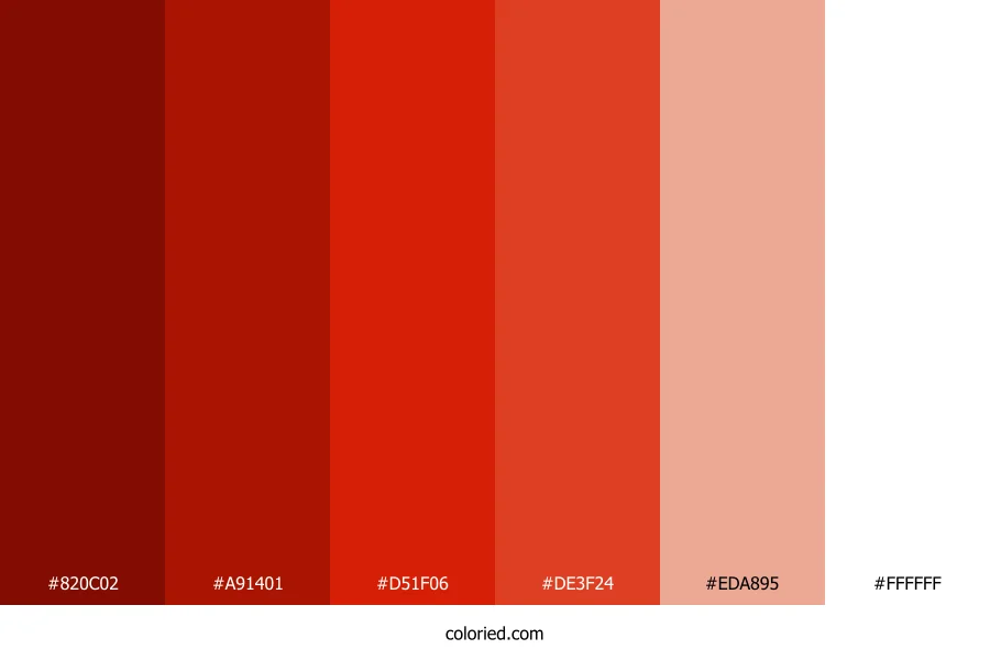 ![]() | #820C02 | 130, 12, 2 | 5, 97%, 26% | 0%, 91%, 98%, 49% | oklch(0.387 0.151 30) |