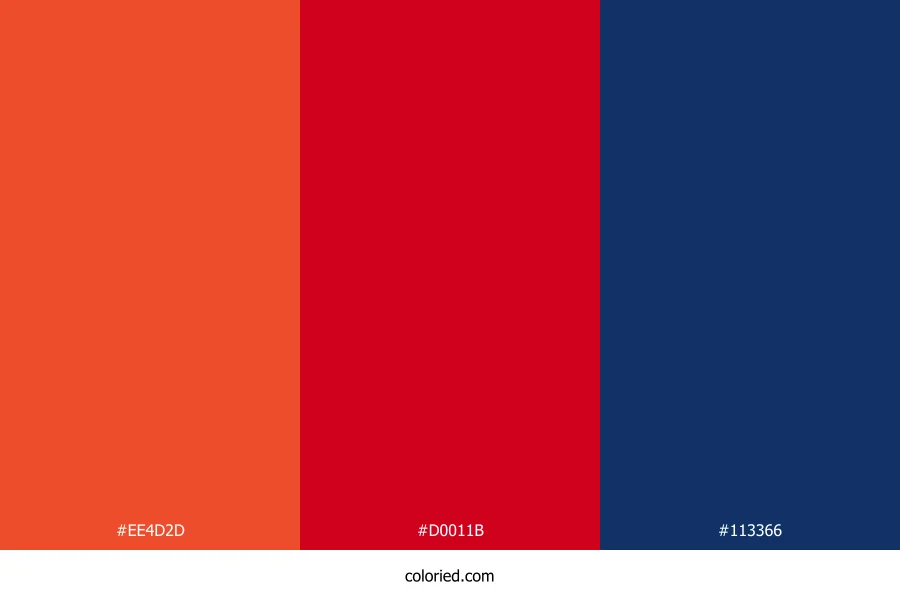 ![]() | #EE4D2D | 238, 77, 45 | 10, 85%, 55% | 0%, 68%, 81%, 7% | oklch(0.642 0.203 33) |